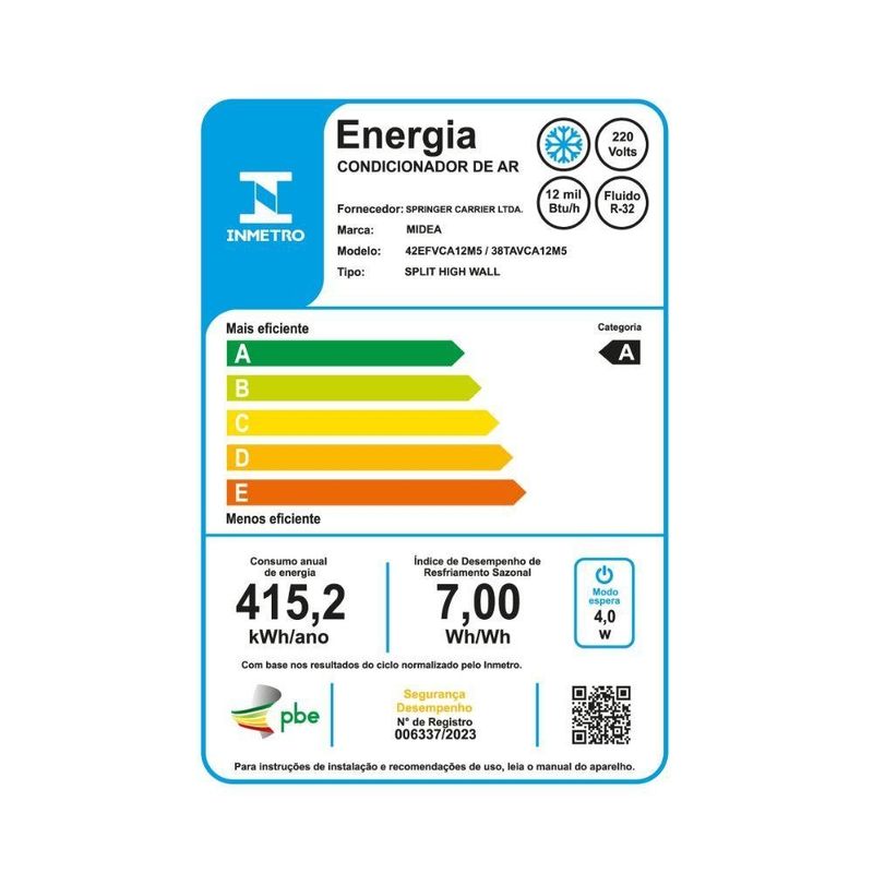 Ar Condicionado Split Inverter Midea AI AirVolution 12000 BTUs Frio 220V 38TAVCA12M5 REF: 7898945166560