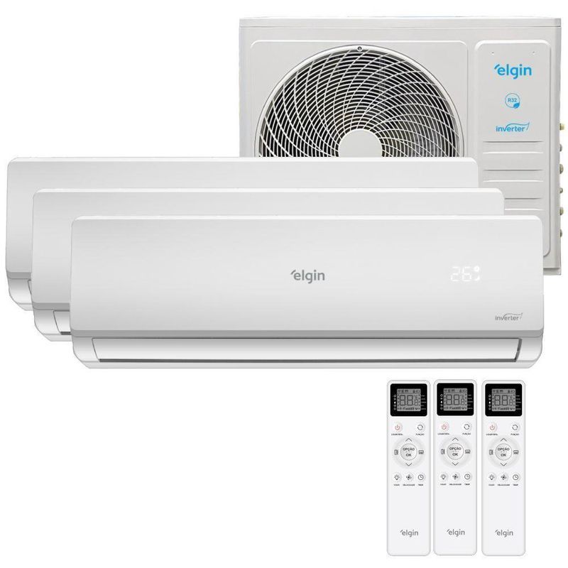 Ar Condicionado Tri Split Elgin 27000 BTUs (HW 1x09K + 2x12K) Quente e Frio Inverter 220V R32 MTQE27C2CB REF: 7908412506901