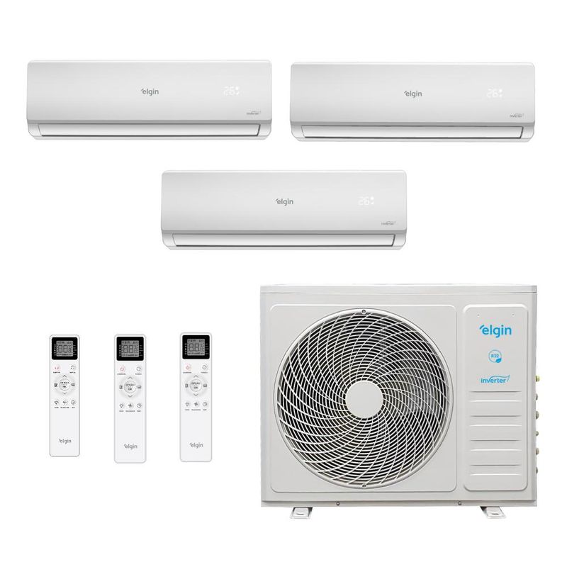 Ar e VentilaçãoAr condicionadoAr Condicionado Tri Split Hi Wall Inverter Elgin Total Plus 27000 BTUs (12000+12000+12000) Quente/Frio MTQE27C2CB - 220V