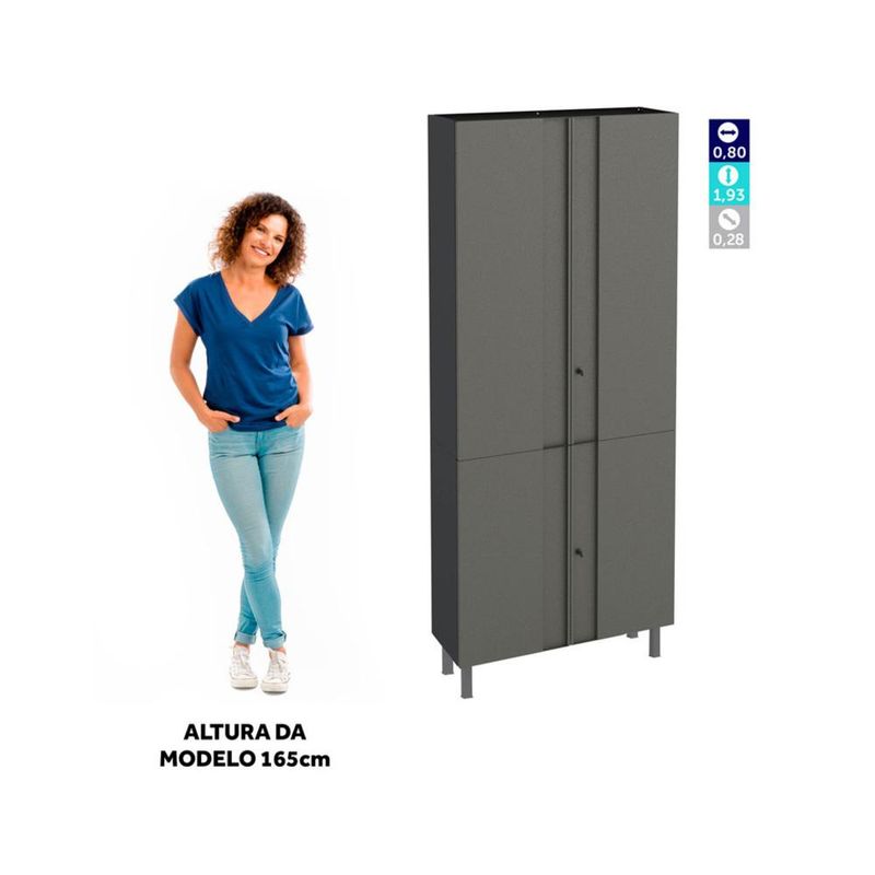 Armário Aço Lavanderia Multiuso Multimóveis CR6043 Cinza/Pto REF: 568094_Sicredi