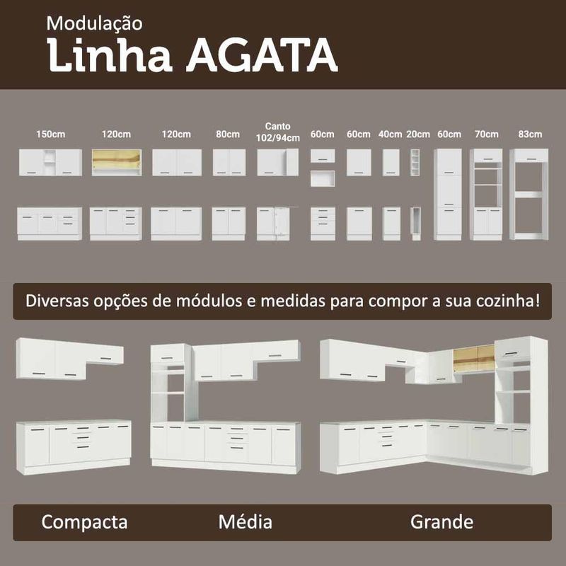 Casa e DecoraçãoMóveisArmário de CozinhaArmário Aéreo 100 cm 1 Porta Basculante Branco Agata Madesa