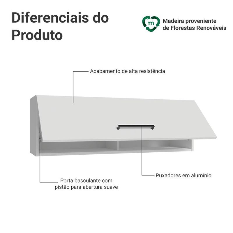 Armário Aéreo 100 cm 1 Porta Basculante Branco Agata Madesa REF: 7891760079299