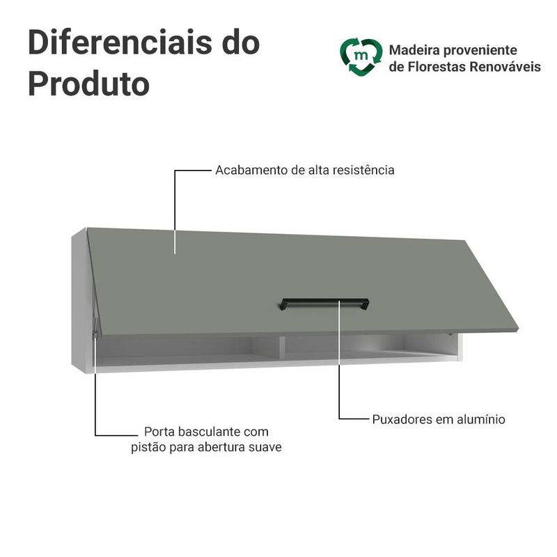 Armário Aéreo 100 cm 1 Porta Basculante Branco/Cinza Agata Madesa REF: 7891760084149