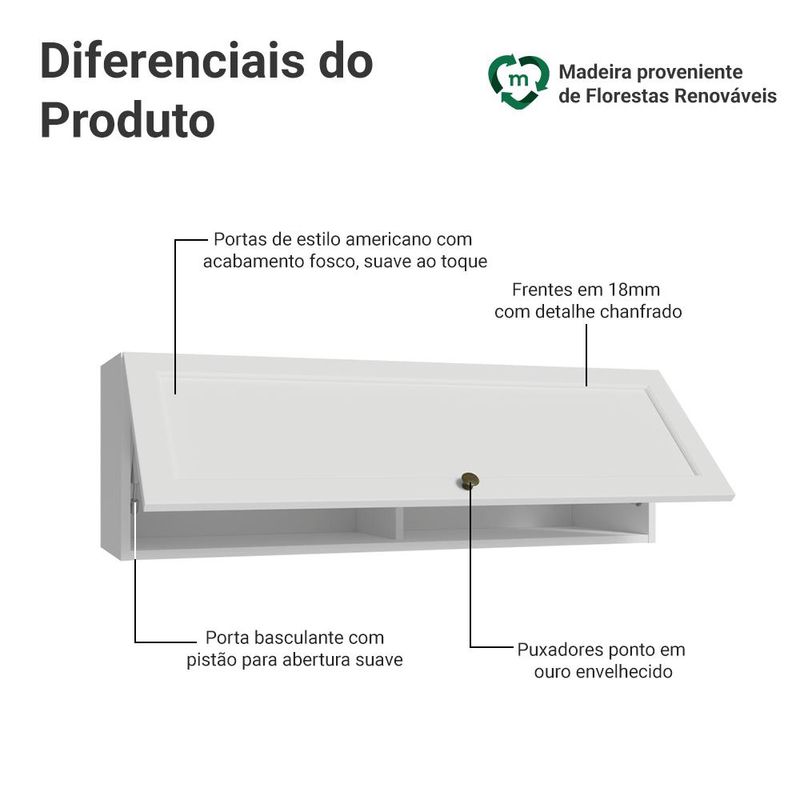 Armário Aéreo 100 cm 1 Porta Basculante Branco Vik Madesa REF: 7891760071798