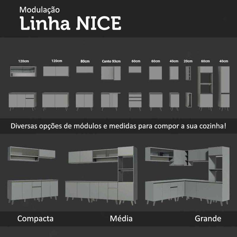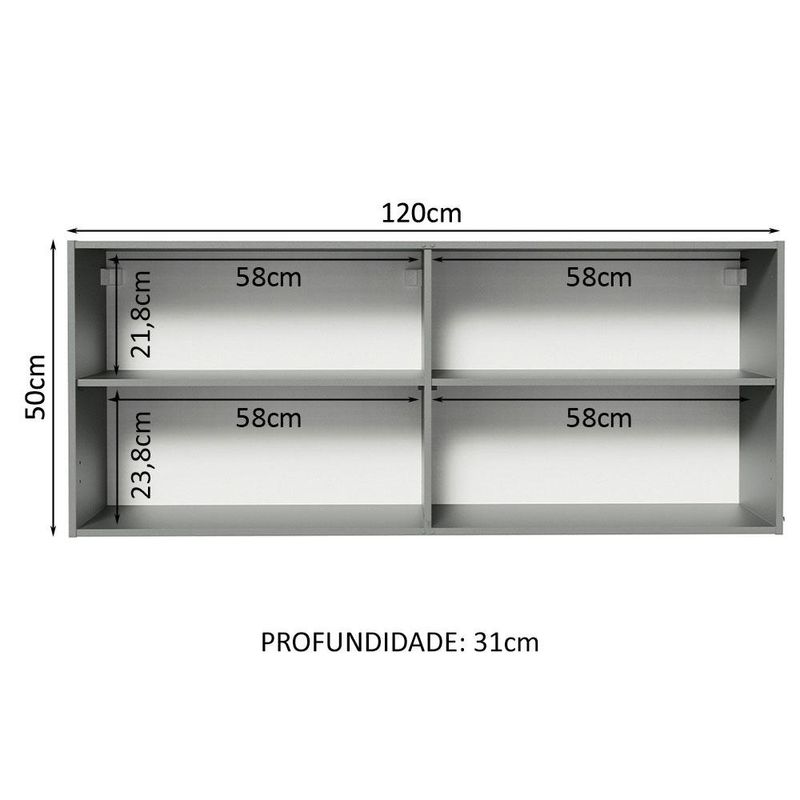 Armário Aéreo 120 x 50 cm 2 Portas Cinza Nice Madesa REF: 509347_Sicredi