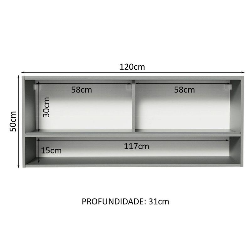 Armário Aéreo 2 Portas de Correr de Vidro Neutral e 1 Nicho Cinza Nice Madesa REF: 509351_Sicredi