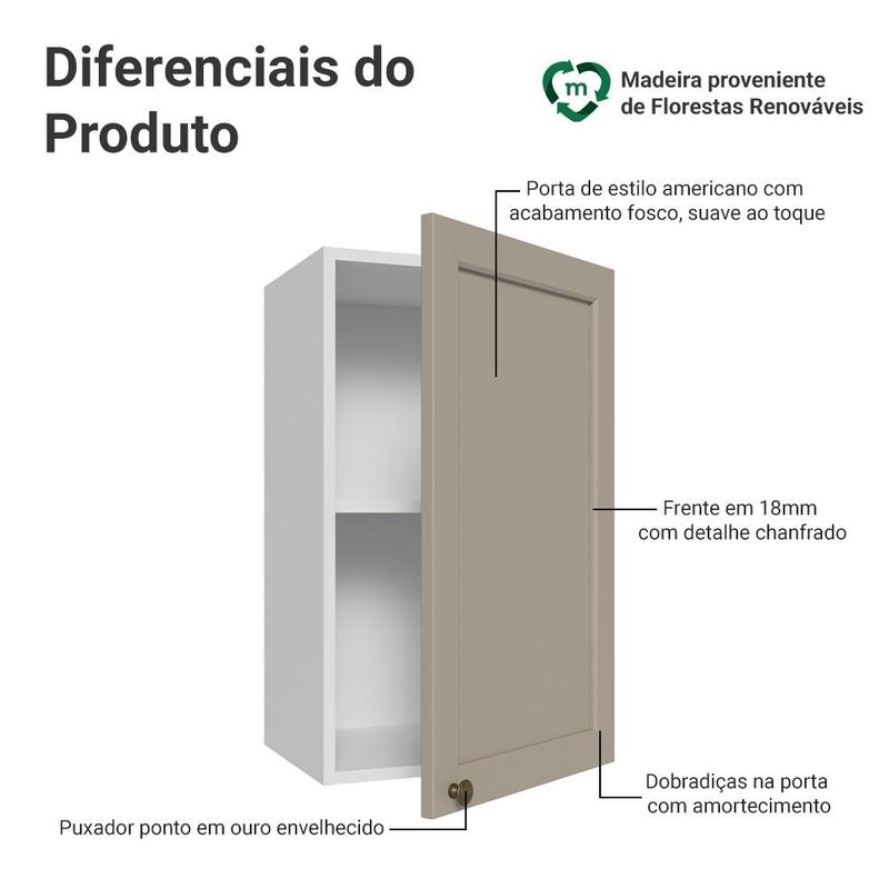 Casa e DecoraçãoMóveisArmário de CozinhaArmário Aéreo 40 cm 1 Porta Branco/Crema Vik Madesa