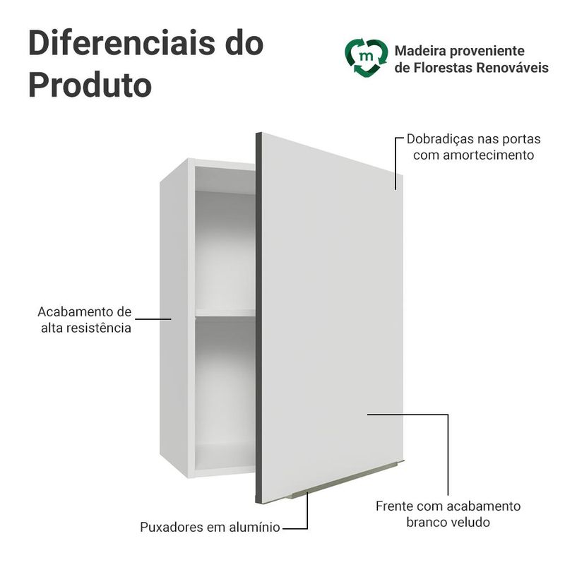 Armário Aéreo 50cm 1 Porta Branco/Branco Veludo Lux Madesa REF: 7891760981707