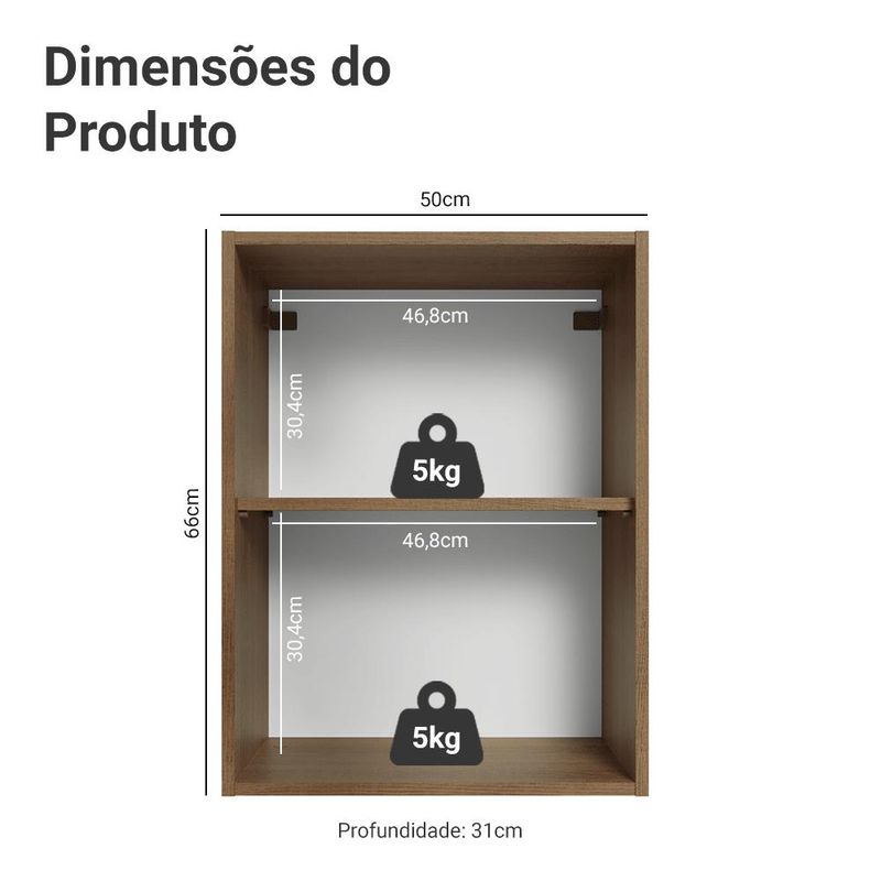 Casa e DecoraçãoMóveisArmário de CozinhaArmário Aéreo 50cm 1 Porta Rustic/Preto Agata Madesa