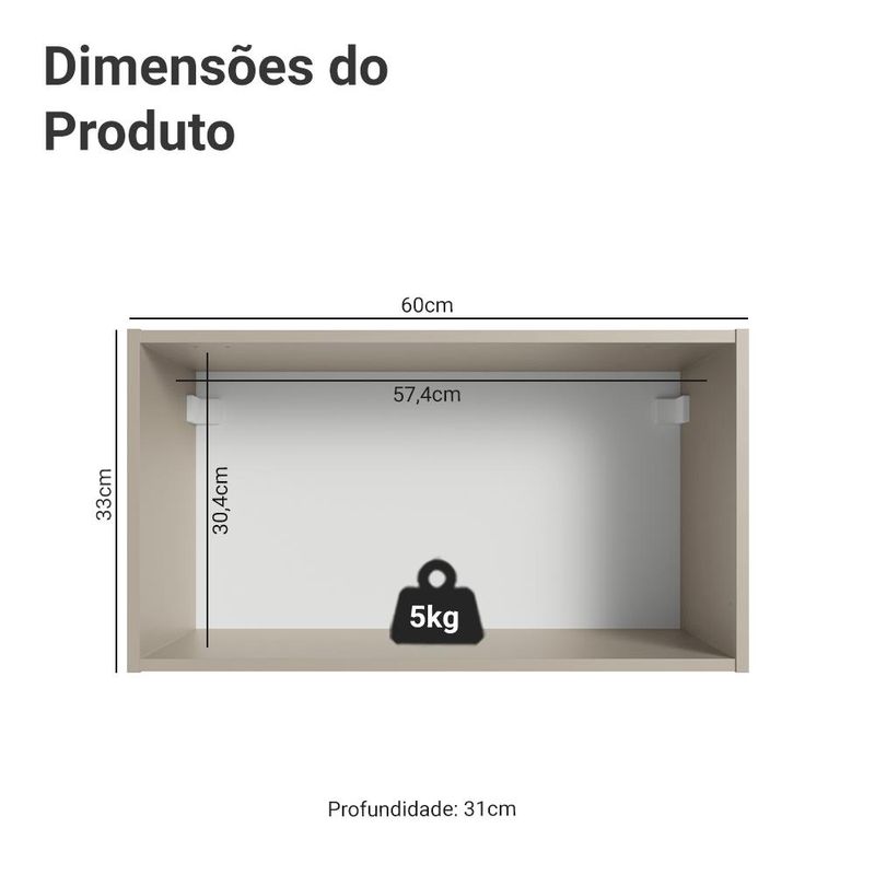 Armário Aéreo 60 cm 1 Porta Basculante Crema Nice Madesa REF: 7891760941268