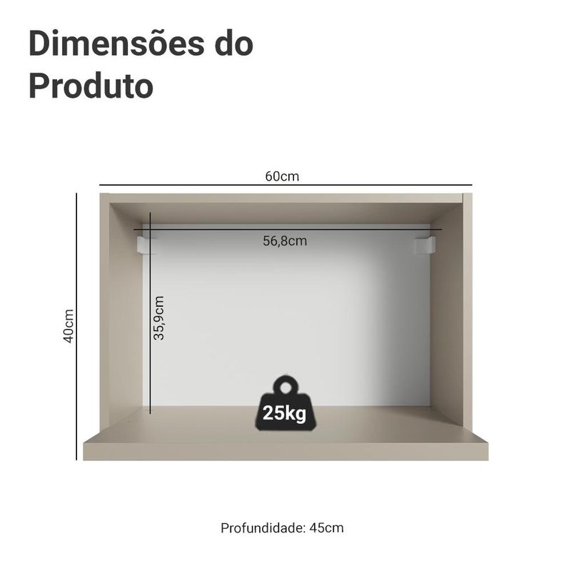 Armário Aéreo 60 cm Nicho para Microondas/Forno Elétrico Crema Nice Madesa REF: 7891760942081