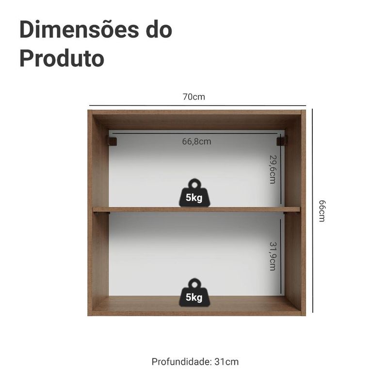 Casa e DecoraçãoMóveisArmário de CozinhaArmário Aéreo 70 cm 2 Portas Rustic/Azul Vik Madesa