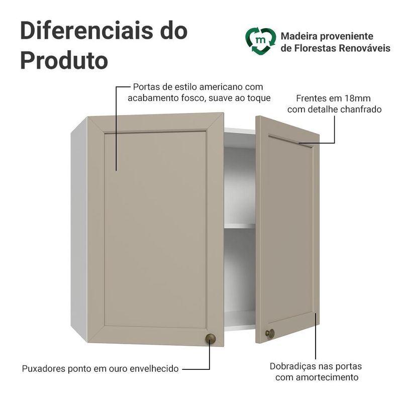 Armário Aéreo 80 cm 2 Portas Branco/Crema Vik Madesa REF: 7891760112798