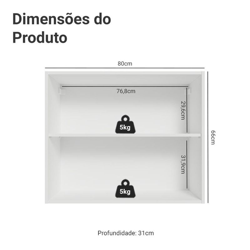 Armário Aéreo 80 cm 2 Portas Branco Vik Madesa REF: 758442_Sicredi