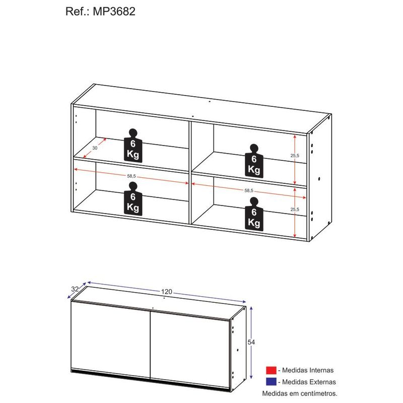 Casa e DecoraçãoMóveisArmário de CozinhaArmário Aéreo Cozinha 120 cm 2 Portas Veneza GB Multimóveis Preto