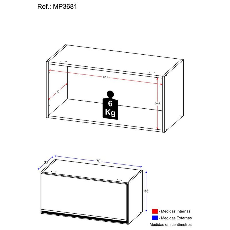 Casa e DecoraçãoMóveisArmário de CozinhaArmário Aéreo Cozinha 70 cm 1 Porta Basculante Veneza Multimóveis MP3681.898 Preto/Branco