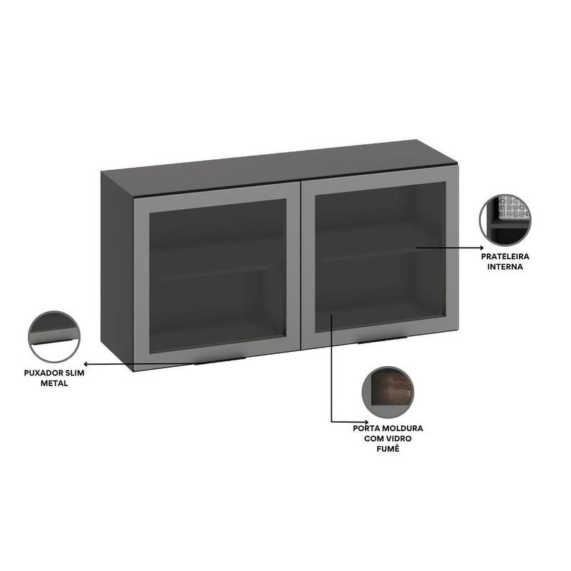Armário Aéreo de Cozinha Poliman Etna 120cm 2 Portas de Vidro Grafite REF: 7894867947287