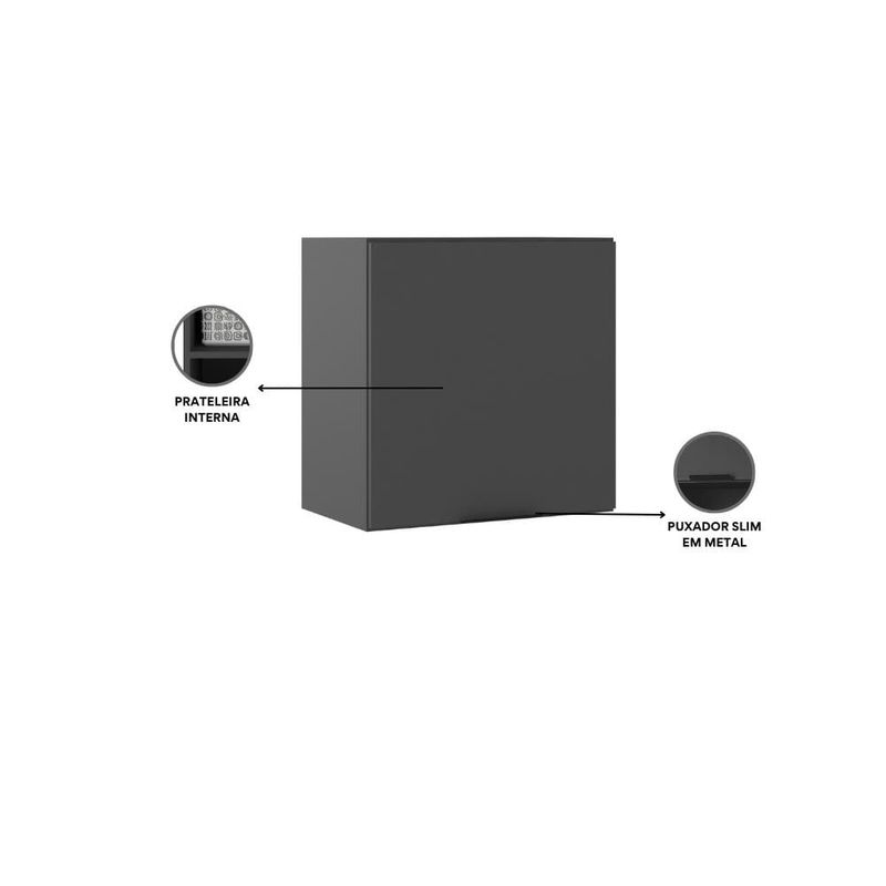 Casa e DecoraçãoMóveisArmário de CozinhaArmário Aéreo de Cozinha Poliman Etna 58cm 1 Porta Grafite