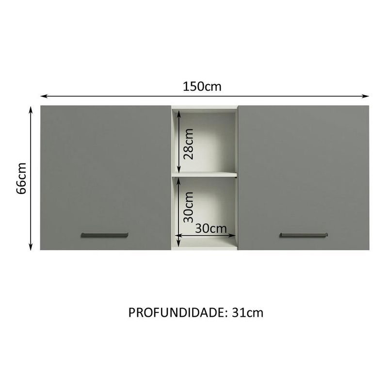 Armário Aéreo Madesa Agata 150 cm 2 Portas e 2 Nichos - Branco/Cinza REF: 509556_Sicredi