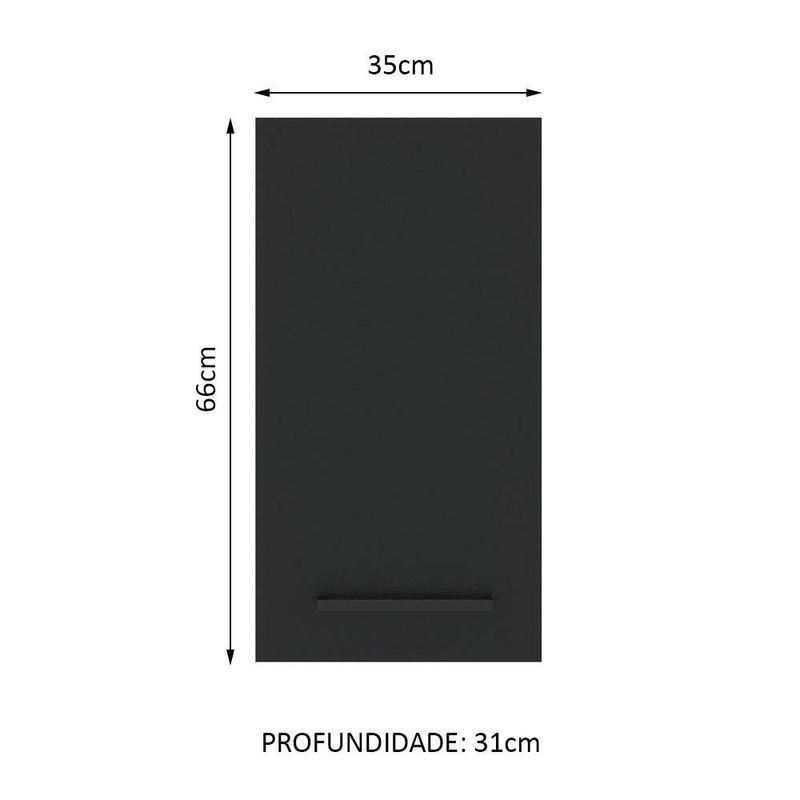 Armário Aéreo Madesa Agata 35 cm 1 Porta - Rustic/Preto REF: 509603_Sicredi