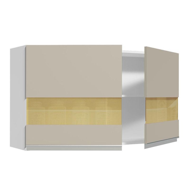 Armário Aéreo Madesa Glamy 120 cm 2 Portas com Vidro - Branco/Crema REF: 509683_Sicredi