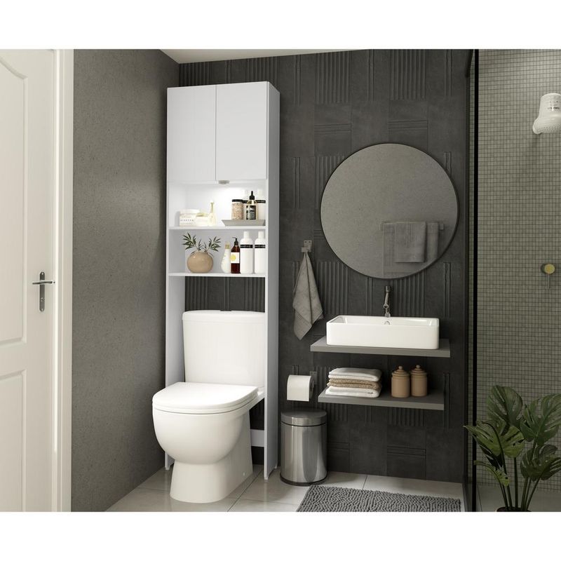 Armário Banheiro com Led para Vaso Sanitário e 2 portas Multimóveis Branco REF: 761661_Sicredi