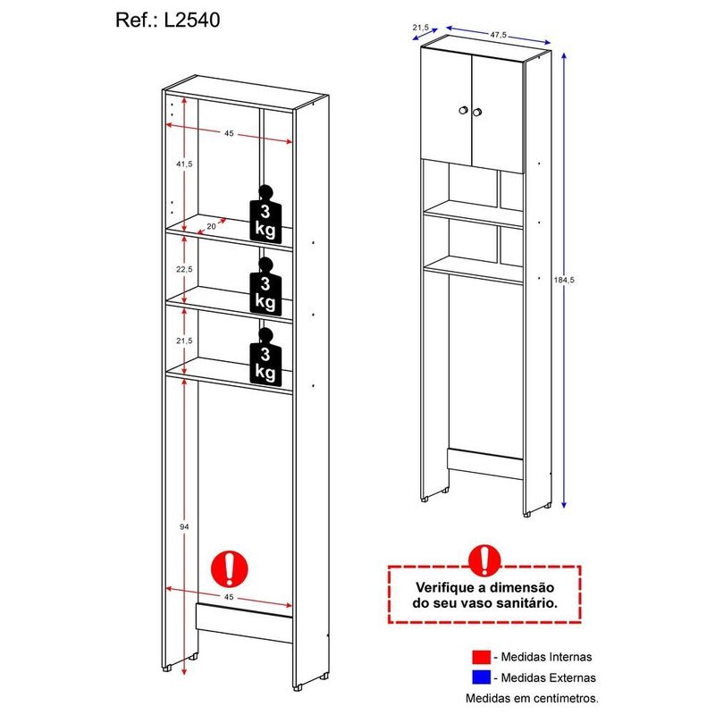 Casa e DecoraçãoMóveisArmário de CozinhaArmário Banheiro p/ Vaso Sanitário com 2 portas Aspen Multimóveis Branco