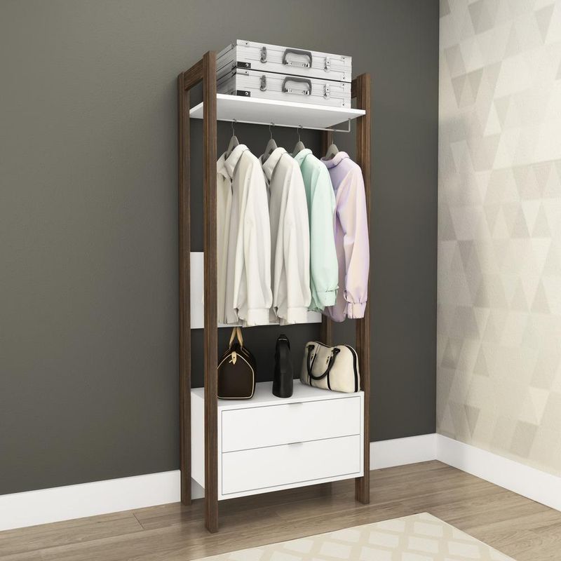 Armário Closet com 2 Gavetas Multimóveis CR35001 Branco/Nogal REF: 771796_Sicredi