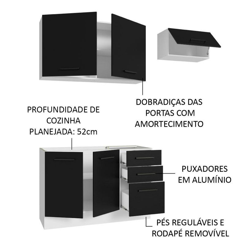 Casa e DecoraçãoMóveisCozinhasArmário de Cozinha Compacta 180cm Branco/Preto Agata Madesa 09