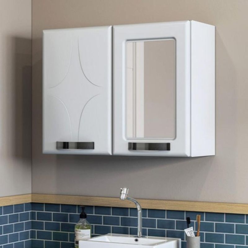 Armário de Banheiro Aéreo de Aço com Espelho e 2 Portas Multimóveis CR10142 REF: 7899390811258