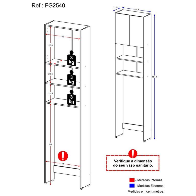 Armário de Banheiro para Vaso Sanitário Multimóveis com 2 portas FG2540 Branco REF: 764366_Sicredi