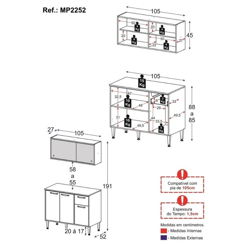 Casa e DecoraçãoMóveisArmário de CozinhaArmário de Cozinha Aéreo com Balcão para Pia 105cm Siena Multimóveis MP2252