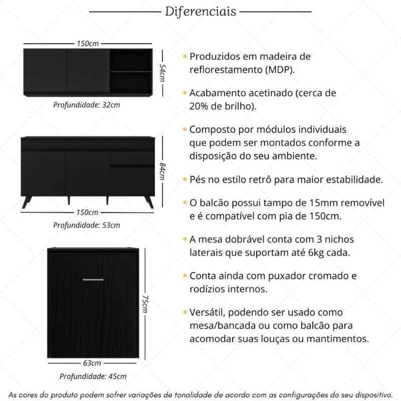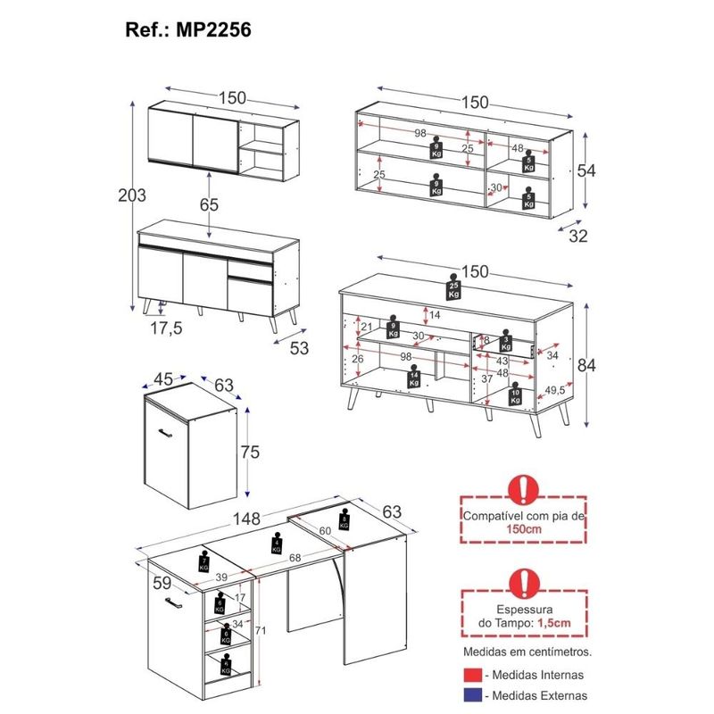 Casa e DecoraçãoMóveisCozinhasArmário de Cozinha Aéreo com Balcão para Pia e Mesa Dobrável Multimóveis MP2256