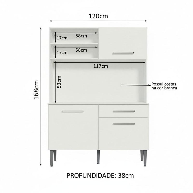 Armário de Cozinha Compacta 120cm Branco Life Madesa REF: 7891760934390