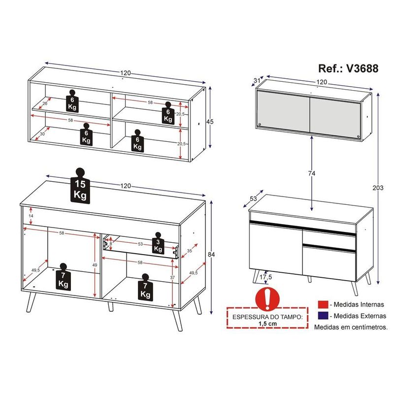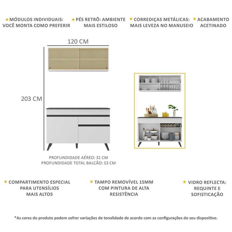 Armário de Cozinha Compacta 120cm Veneza Multimóveis V3688 REF: 569032_Sicredi