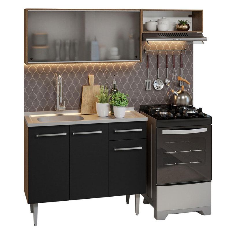 Casa e DecoraçãoMóveisCozinhasArmário de Cozinha Compacta 165cm com Pia Rustic/Preto Emilly Madesa 05