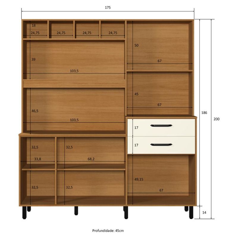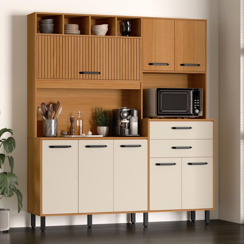 Casa e DecoraçãoMóveisCozinhasArmário de Cozinha Compacta 175cm com 8 Portas e 2 Gavetas Multimóveis CR20287