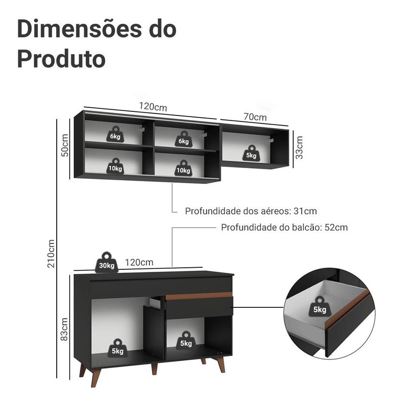 Casa e DecoraçãoMóveisArmário de CozinhaArmário de Cozinha Compacta 190cm Preto Reims Madesa 05