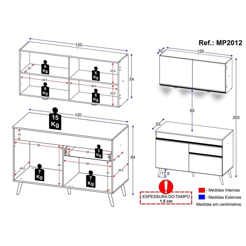 Casa e DecoraçãoMóveisArmário de CozinhaArmário de Cozinha Compacta 2 peças com Leds MP2012.891 Veneza Up Multimóveis Branco