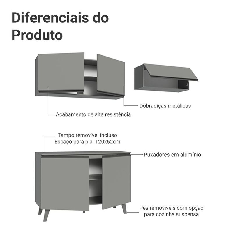Casa e DecoraçãoMóveisCozinhasArmário de Cozinha Compacta 200cm Cinza Nice Madesa 01