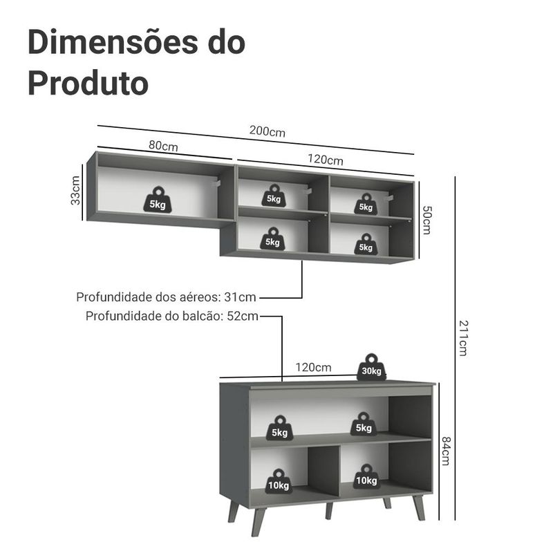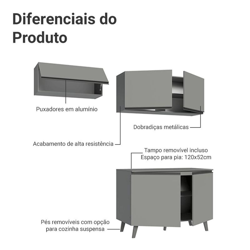 Casa e DecoraçãoMóveisCozinhasArmário de Cozinha Compacta 200cm Cinza Nice Madesa 01XA