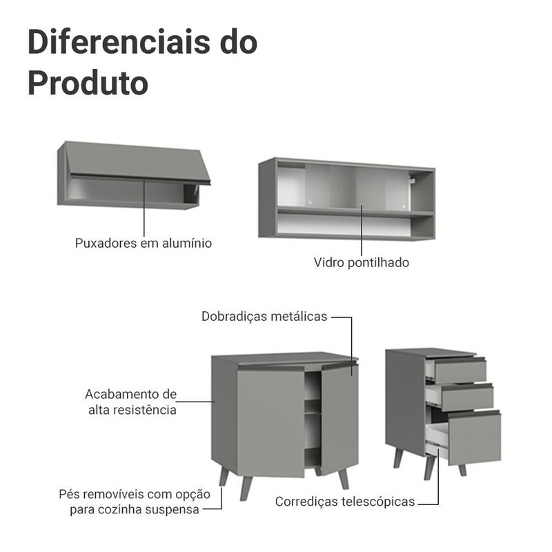 Casa e DecoraçãoMóveisCozinhasArmário de Cozinha Compacta 200cm Cinza Nice Madesa 13