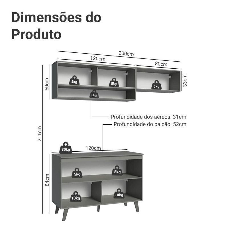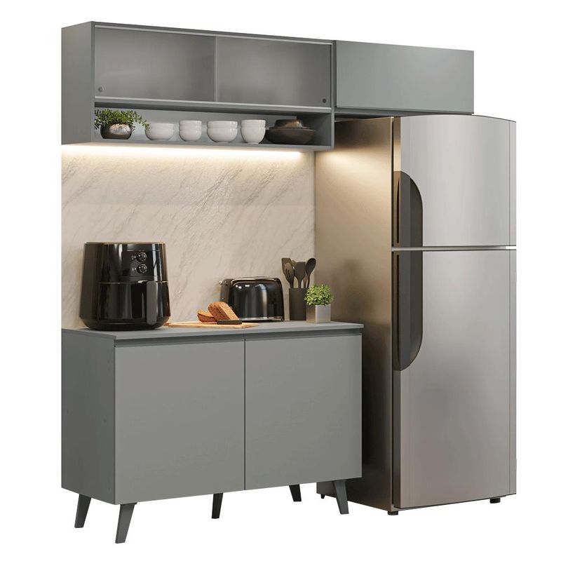 Armário de Cozinha Compacta 200cm Cinza Nice Madesa XA09 REF: 725105_Sicredi