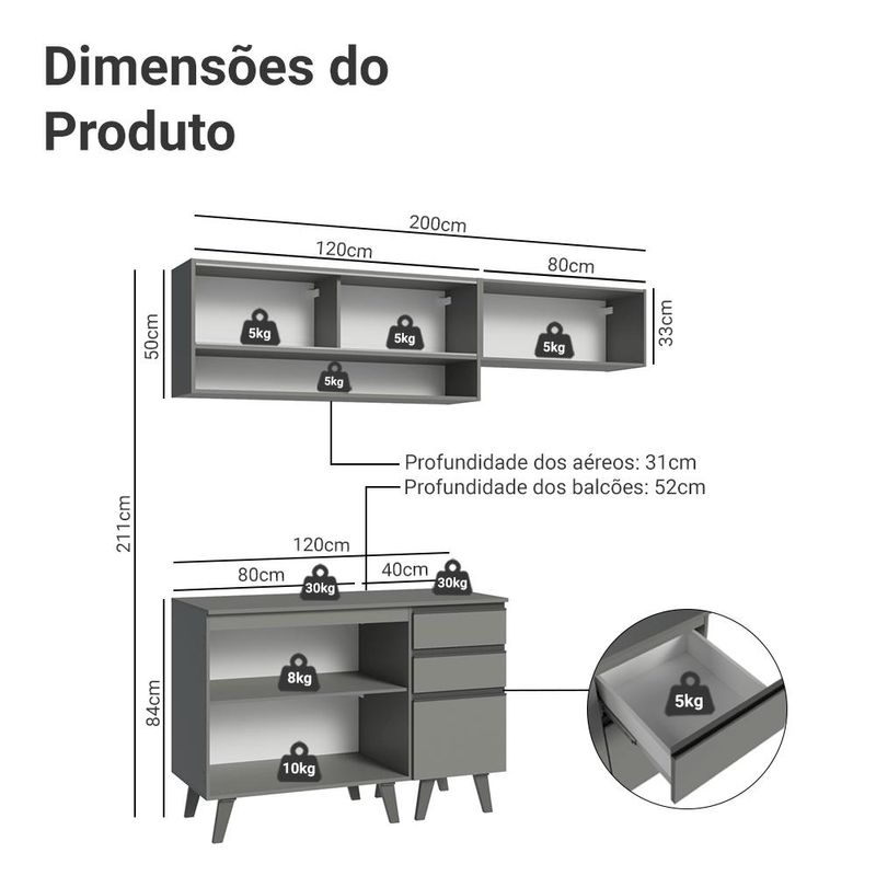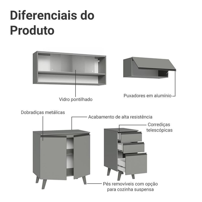 Casa e DecoraçãoMóveisCozinhasArmário de Cozinha Compacta 200cm Cinza Nice Madesa XA13