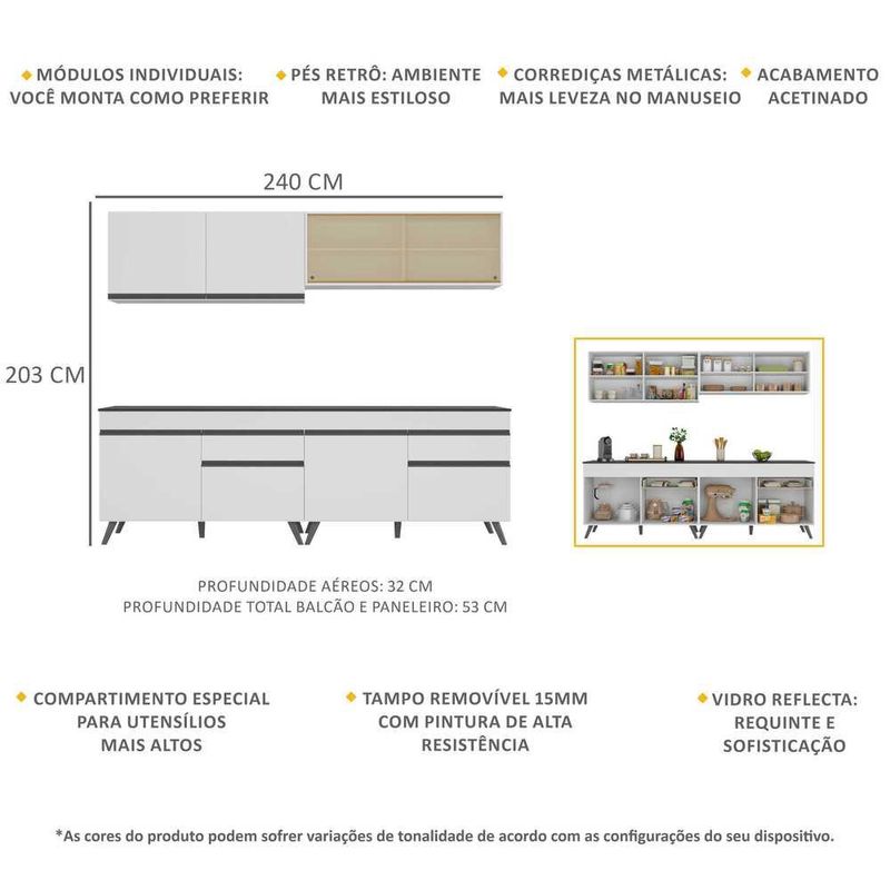Armário de Cozinha Compacta 240cm Veneza Multimóveis V3696 REF: 569043_Sicredi
