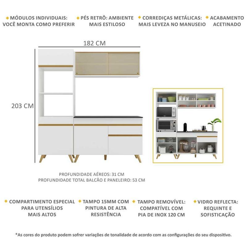 Casa e DecoraçãoMóveisCozinhasArmário de Cozinha Compacta 3 peças MP3695 Veneza GW Multimóveis Branca