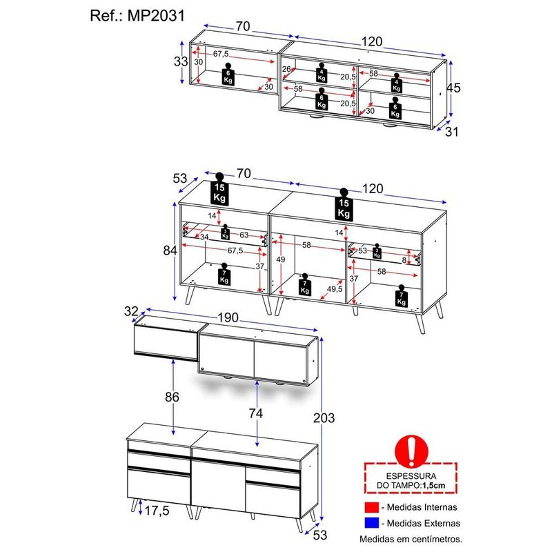 Casa e DecoraçãoMóveisArmário de CozinhaArmário de Cozinha Compacta 4 peças com Leds MP2031 Veneza Up Multimóveis Preta