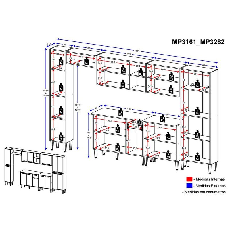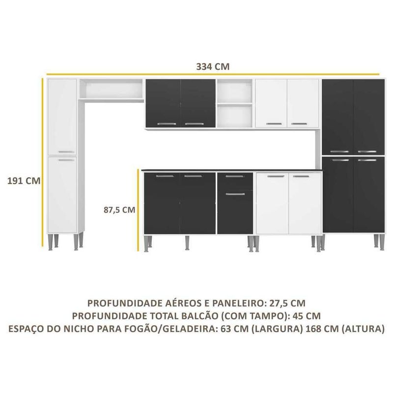 Casa e DecoraçãoMóveisArmário de CozinhaArmário de Cozinha Compacta Balcão c/ Tampo 7 pçs Xangai Blues Multimóveis Branca/Preta