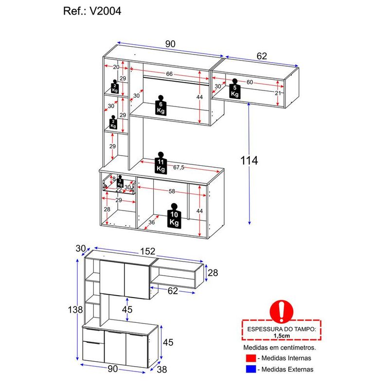 Casa e DecoraçãoMóveisArmário de CozinhaArmário de Cozinha Compacta com Balcão Sofia Multimóveis V2004