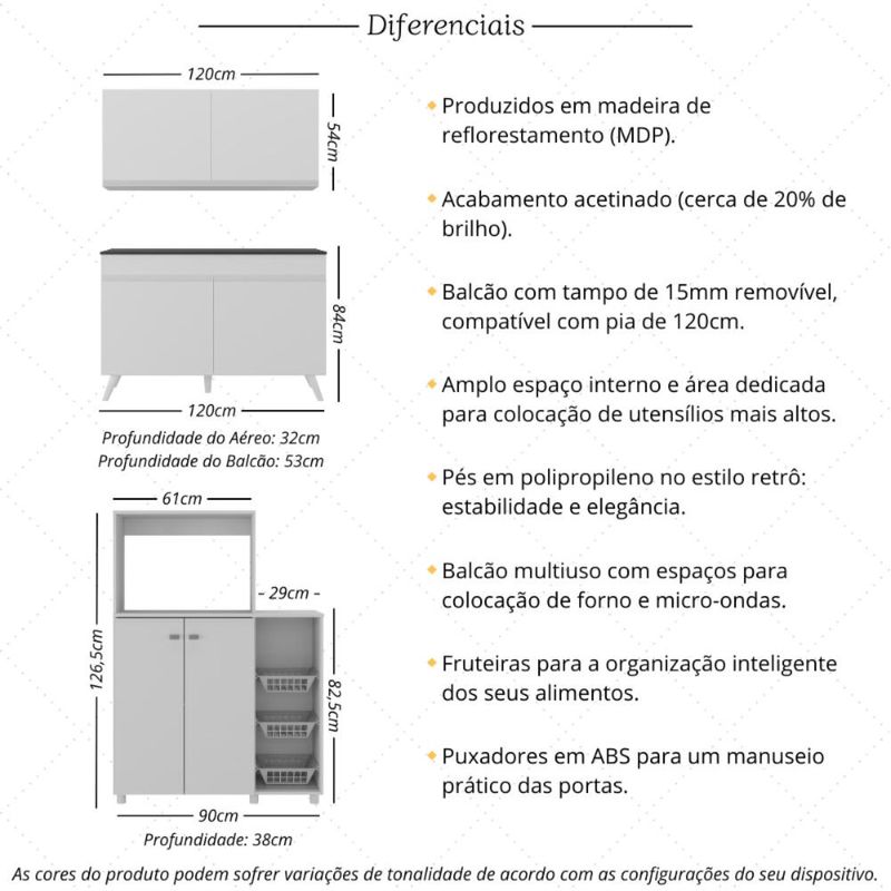 Armário de Cozinha Compacta com Gabinete Pia e Balcão para Forno e Micro-ondas Multimóveis MP2254 REF: 727326_Sicredi